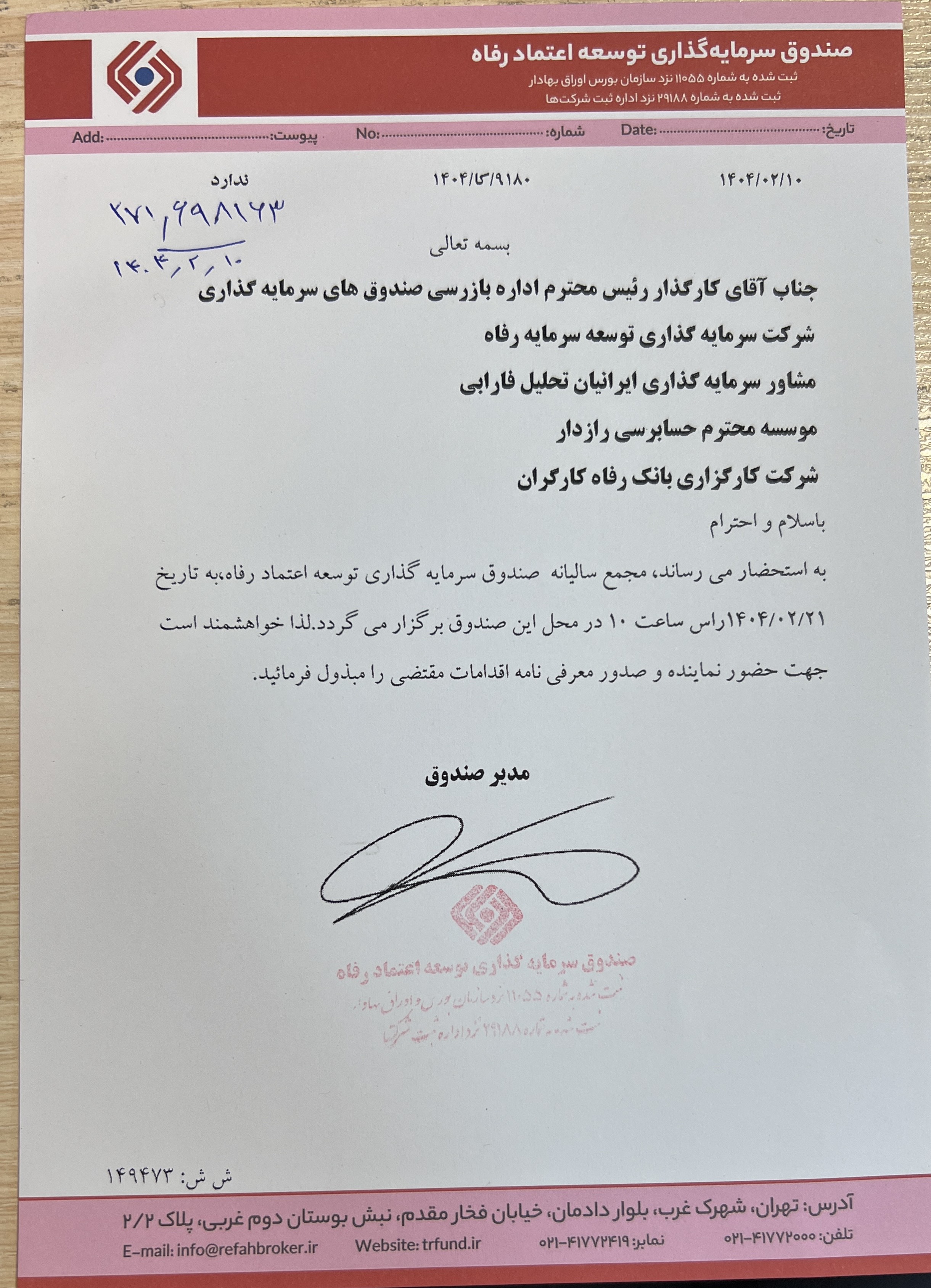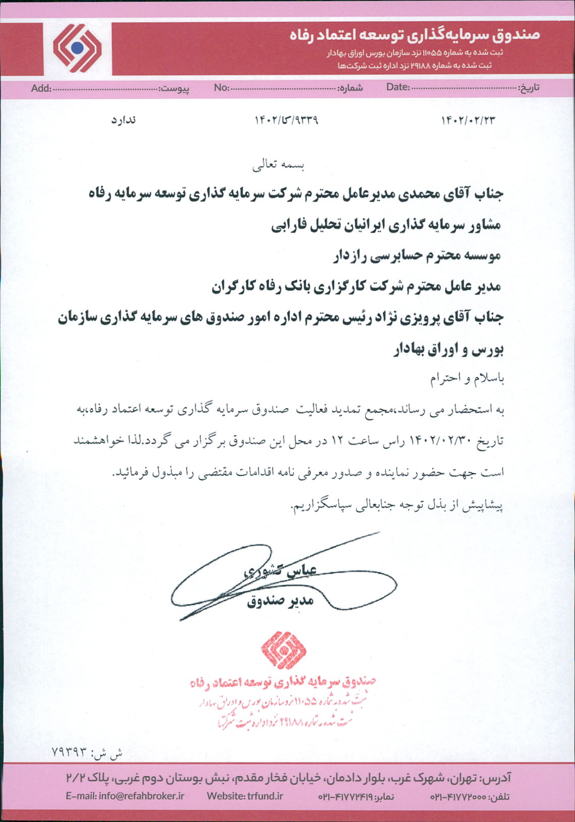 تاییدیه مجمع سالیانه صندوق توسعه اعتماد رفاه مورخه ۱۴۰۲/۰۲/۱۰